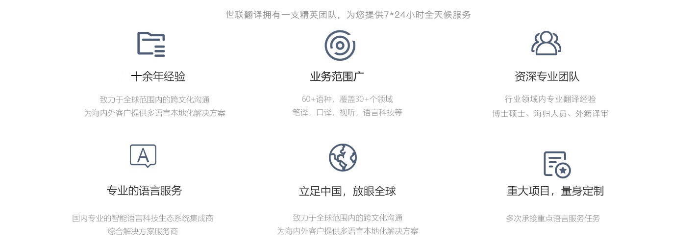 “在這5年中,世聯(lián)翻譯公司人員對(duì)工作的認(rèn)真、負(fù)責(zé)、熱情、周到深深的打動(dòng)了我。不僅譯件質(zhì)量好,交稿時(shí)間及時(shí),還能在我司資金周轉(zhuǎn)緊張時(shí)給予體諒!