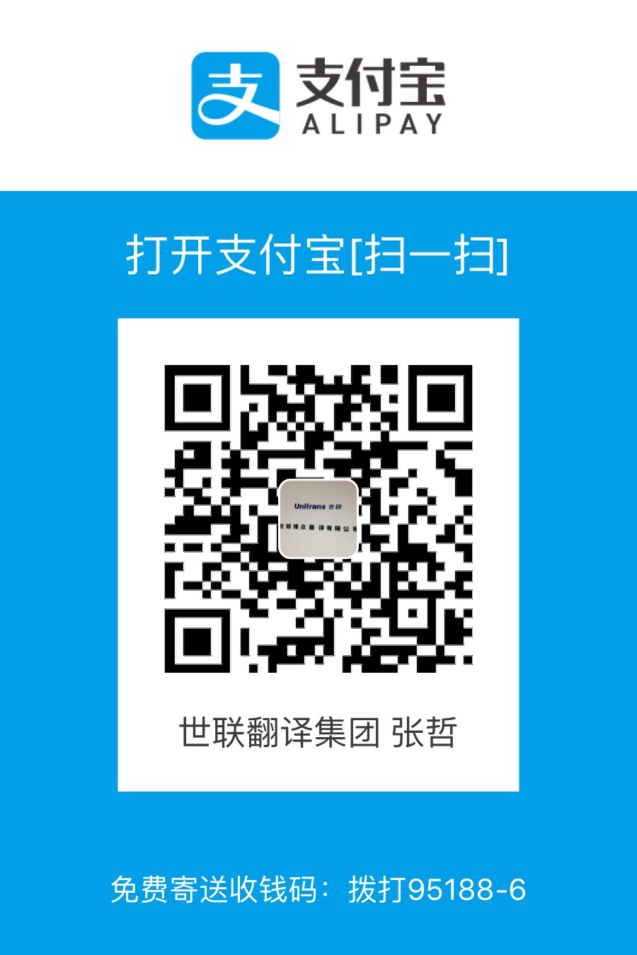 戶(hù)名:世聯(lián)商用翻譯(北京)有限公司 賬號:1100 6087 8018 8000 01884 開(kāi)戶(hù)行:交通銀行北京慧忠北里支行