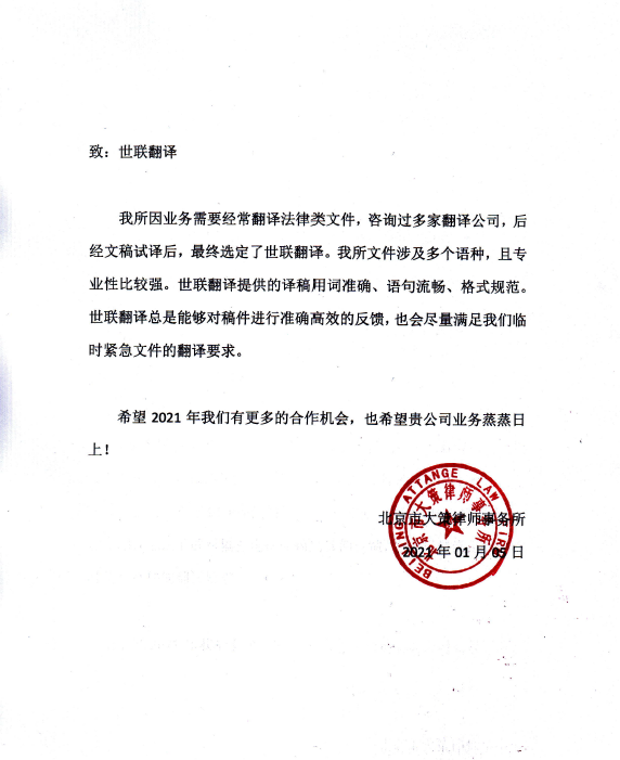 律師事務(wù)所對世聯(lián)翻譯公司的法律翻譯評價(jià)